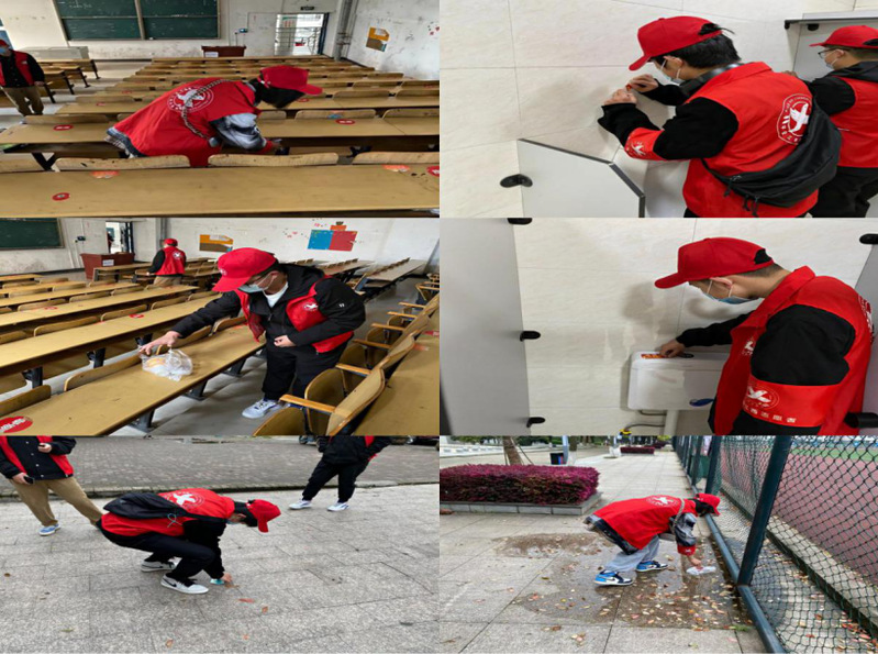 高职学院学生会联合各分院学生会志愿者们在校园及周边开展环境卫生整治活动。他们身穿红色马甲、头戴小红帽,清理校园各个角落的“顽固”小广告,捡拾教室、走道上的垃圾,对校园进行打扫。一道道红色的背影形成了校园内一条亮丽的风景线。