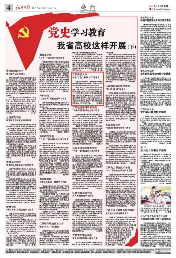 江西日报、学习强国、江西新闻客户端报道我校党史学习教育特色动作