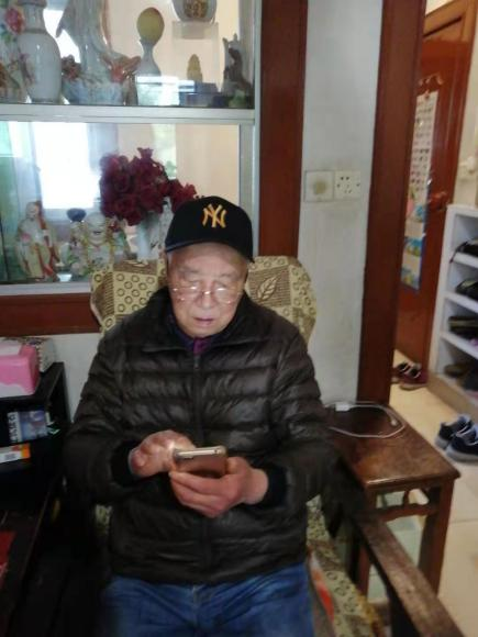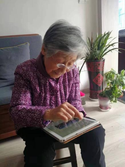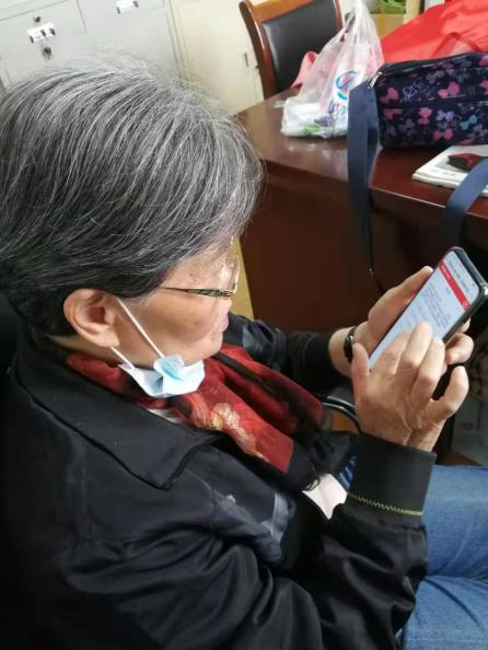 退休校领导张步平今年79岁了,图为她通过手机在认真答题