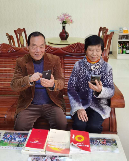 周学松、熊英老两口,夫妻双双学党史