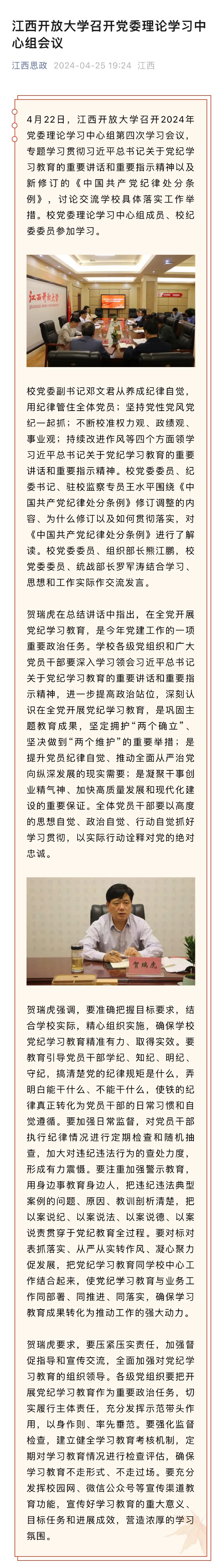 近日,304am永利召开2024年党委理论学习中心组第四次学习会议,专题学习贯彻习近平总书记关于党纪学习教育的重要讲话和重要指示精神以及新修订的《中国共产党纪律处分条例》,讨论交流学校具体落实工作举措。校党委理论学习中心组成员、校纪委委员参加学习。原文地址:https://mp.weixin.qq.com/s/svTzMiY78bnnHtpqVNS3-g (责任编辑:梅莲)